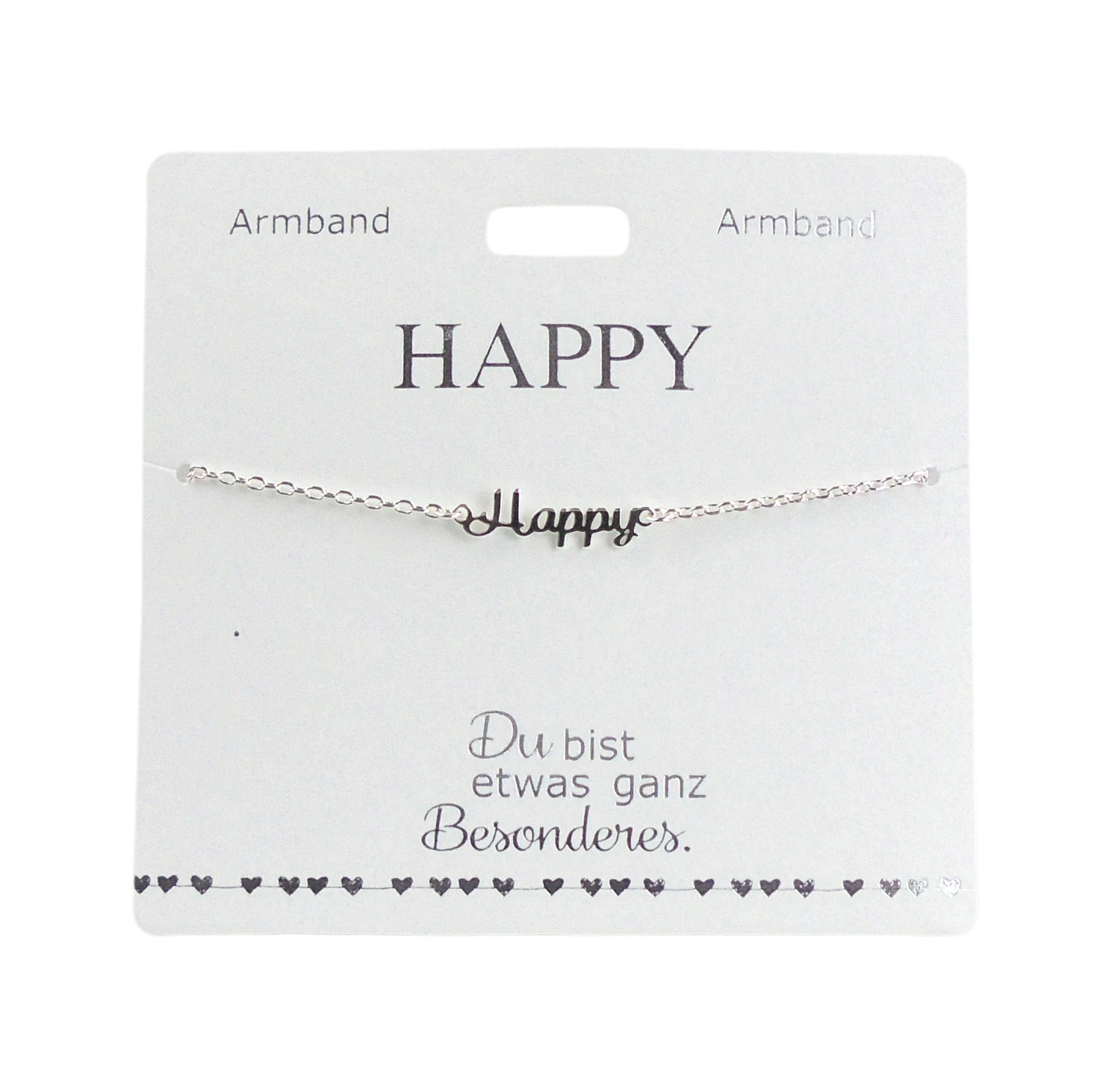 Verschenke das filigran gearbeitete Armband von Depesche mit dem Schriftzug: “Happy” als Zeichen der Verbundenheit.