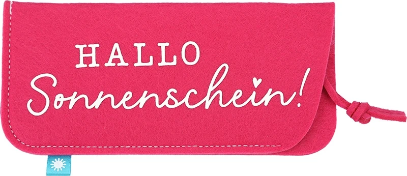 Mit der Brillenhülle aus Filz “Hallo Sonnenschein” ist deine Brille immer sicher aufgehoben! Das Etui ist aus hochwertigem, weichem Filz hergestellt. Dadurch schützt es die empfindlichen Gläser vor Kratzern, die z.B. durch Staub entstehen können. Auch vor äußeren Einflüssen ist die Brille durch das dicke Material gut geschützt. Der schöne Schriftzug, mit dem die Hülle versehen ist, macht sie zu einem absoluten Hingucker. Als kleines Extra-Detail ist an der unteren Naht ein kleines Stoff-Fähnchen eingenäht, auf dem sich ein passendes Motiv findet.