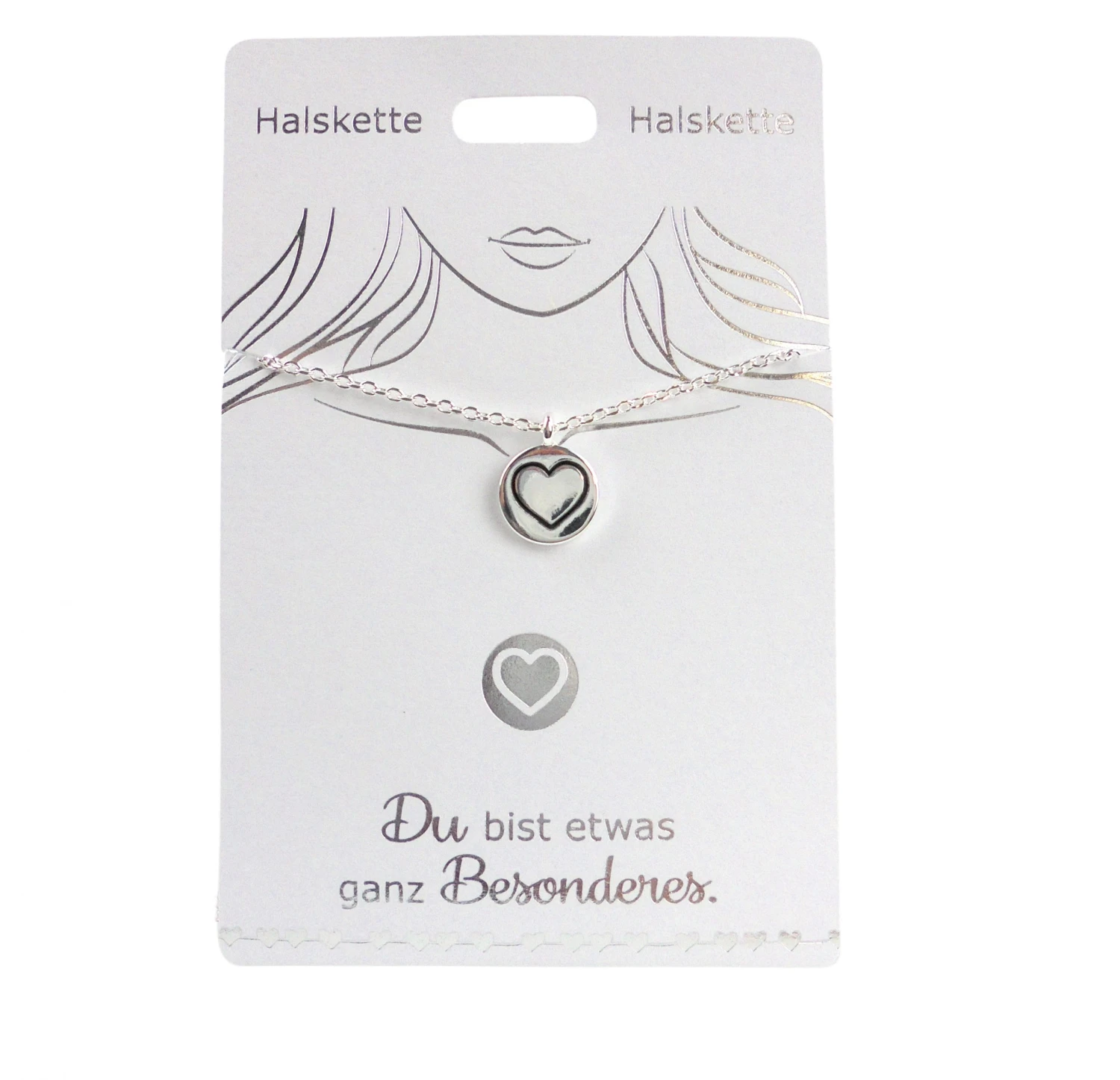 Verschenke die filigrane, versilberte Halskette von Depesche mit dem runden Anhänger und geprägtem Herzmotiv als Zeichen der Verbundenheit.