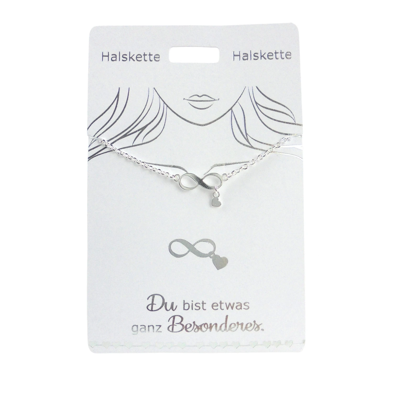 Verschenke die filigrane, versilberte Halskette von Depesche mit dem Anhänger in Form des Unendlichkeitssymbol an dem sich ein weiterer kleiner Herzanhängerbefindet als Zeichen der Verbundenheit.