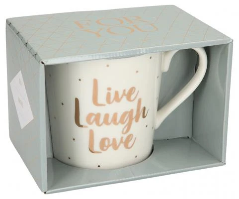 Dieser stylische Porzellanbecher mit dem Schriftzug “Live – Laugh – Love” macht das Genießen des Lieblingsgetränks zu einem Glamour-Event! Ob heißer Tee, kühle Limo oder Wasser: Aus diesem herrlichen Becher schmeckt alles viel besser!