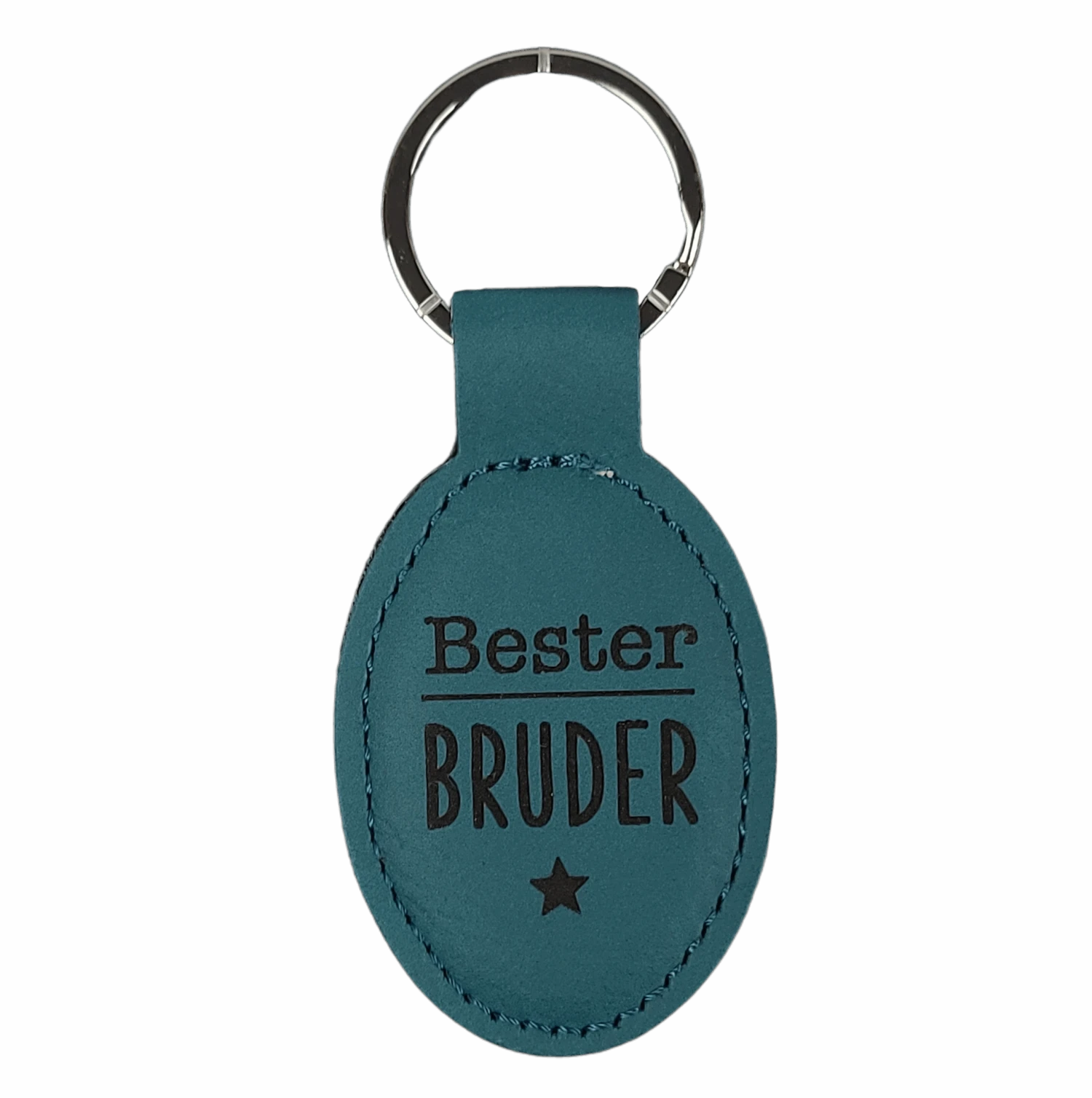 Der ovale Schlüsselanhänger “Bester Bruder” aus der “Vergiss mich nicht”-Kollektion von Depesche – ein schönes Geschenk für einen besonderen Menschen! Der Anhänger besteht aus petrolfarbenem Kunstleder und ist mit den Worten “Bester Bruder” versehen. Ein stabiler Schlüsselring/Splitring sorgt für eine einfache, schnelle und sichere Befestigung am Schlüsselbund.