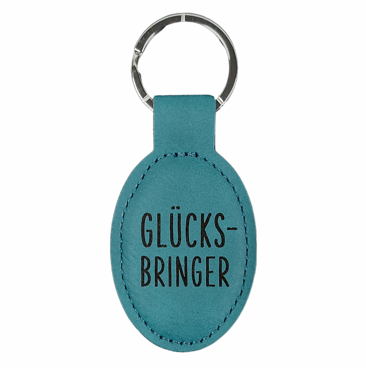 Der ovale Schlüsselanhänger “Glücksbringer” aus der “Vergiss mich nicht”-Kollektion von Depesche – ein schönes Geschenk für einen besonderen Menschen! Der Anhänger besteht aus petrolfarbenem Kunstleder und ist mit den Worten “Glücksbringer” versehen. Ein stabiler Schlüsselring/Splitring sorgt für eine einfache, schnelle und sichere Befestigung am Schlüsselbund.